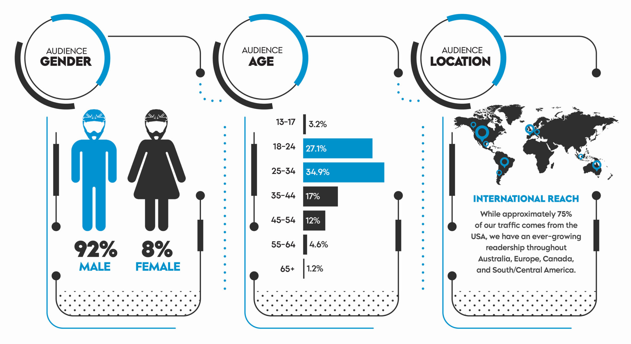 We've replaced broad, wasteful reach with advanced, data-driven, pinpoint targeting, connecting you to real riders based on where they ride, what they ride, events they race, communities they belong to, and more.